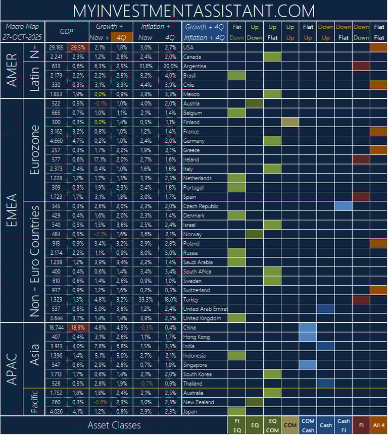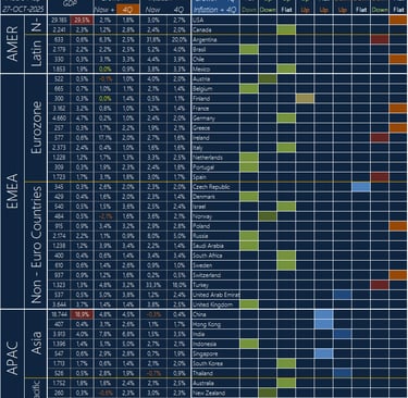 Growth + 4Q is GDP Growth trend of a country based on 1 year ahead forecast (4Q = 4 Quarters)