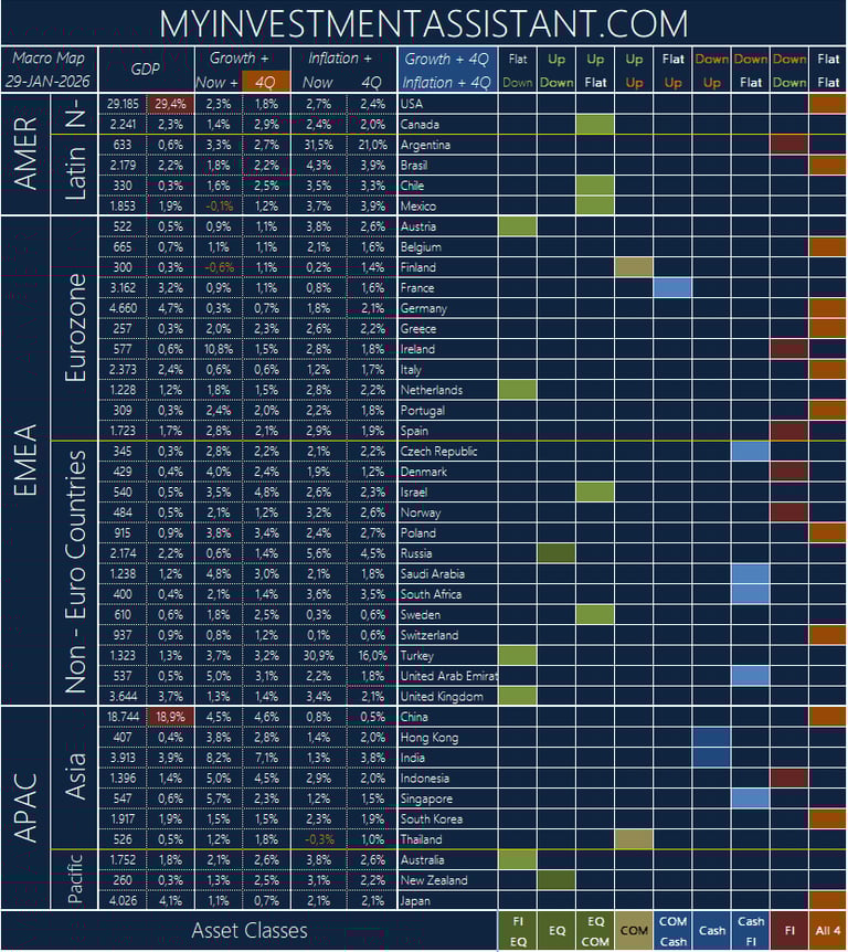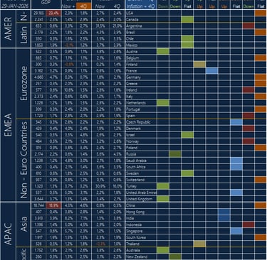 Growth + 4Q is GDP Growth trend of a country based on 1 year ahead forecast (4Q = 4 Quarters)