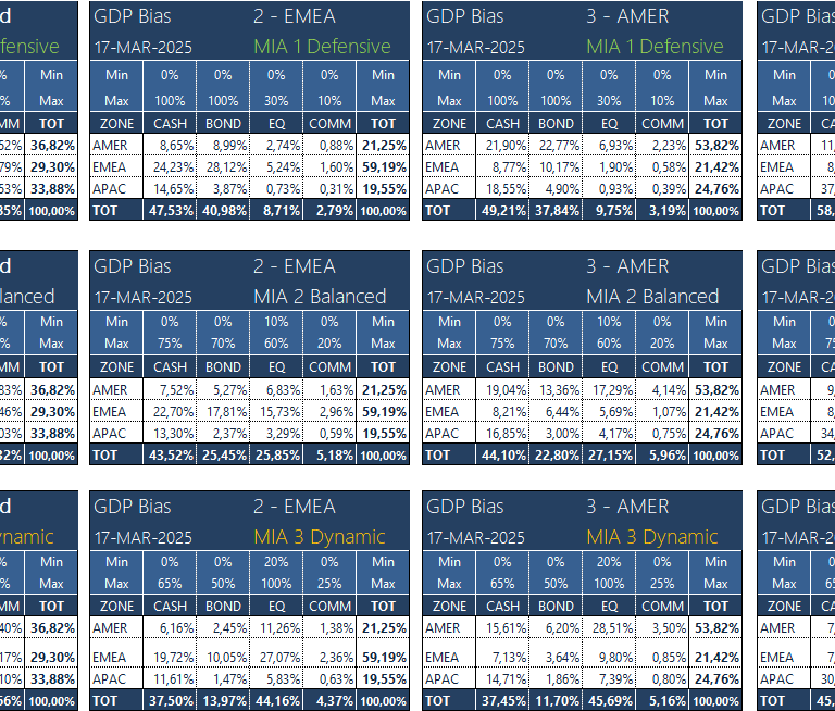 Les principales données macroéconomiques sont suivies quotidiennement et tout changement est reflété dans toutes les grilles d'allocation d'actifs proposées. Il s'agit là de la composante dynamique de l'approche